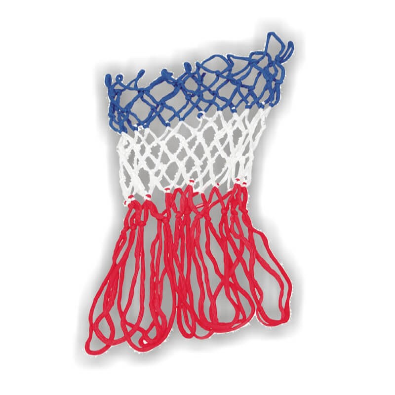 - Standard 4mm thick nylon braided durable training basketball net. Comes in a combination of three color red, white and blue.