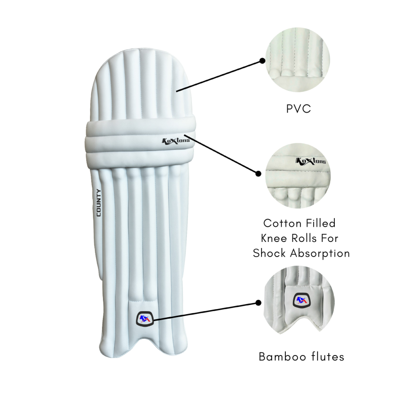 Made with high-density foam padding, a PVC front face, and soft cotton lining, the County pads ensure both durability and breathability. The ergonomic design provides freedom of movement while running, playing shots, or defending against pace bowling.