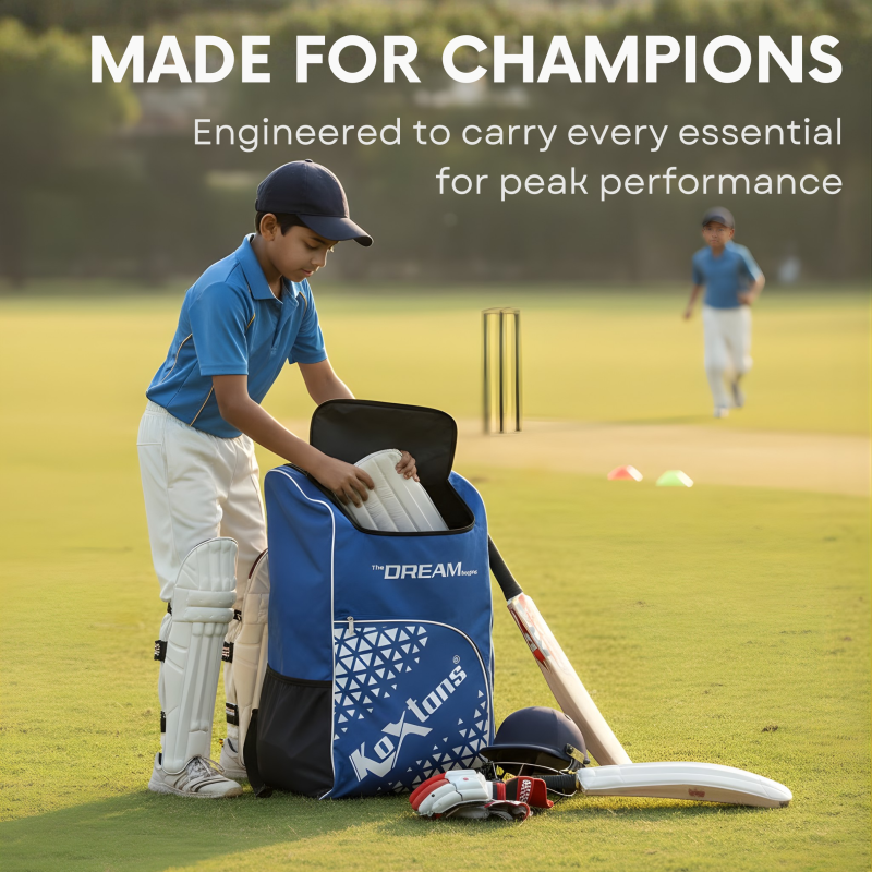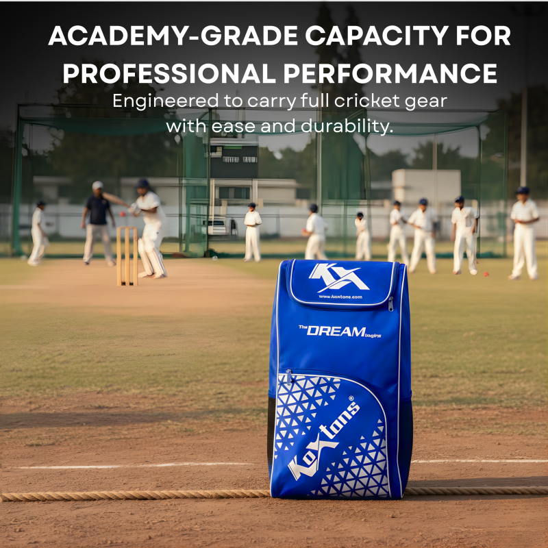 The Koxtons Cricket Kit Bag (Blue) – DREAM is crafted for players who want a compact yet spacious cricket kit bag for everyday practice and matches. Built with heavy-duty polyester material, this bag ensures long-lasting performance even during rough usage.