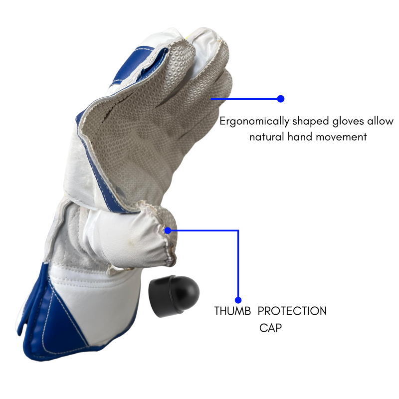 The gloves are built with high-impact finger caps and webbing support between the thumb and index finger, allowing better catching efficiency and reduced injury risk. The deep-cup design helps you confidently collect fast deliveries, edges, and throws.