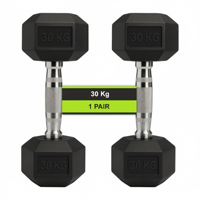 The Koxtons Dumbells - Hexagon - 30 Kg are crafted for athletes, bodybuilders, and fitness enthusiasts who need heavy-duty strength equipment. Featuring a solid cast iron core with a premium rubber coating, these dumbbells are built to handle the most intense training sessions while protecting your floors. The hexagonal anti-roll design ensures stability during use, making them perfect for gyms, personal training studios, and serious home workouts.
