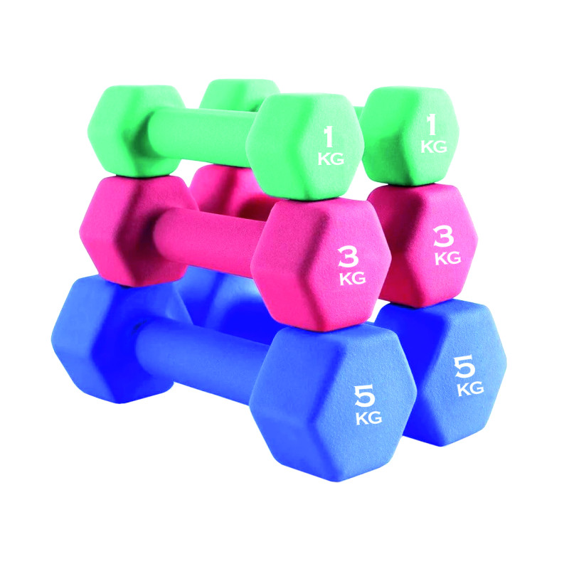 The hexagonal design prevents rolling, ensuring safe storage and stability during exercises. Its moderate 2 Kg weight makes it ideal for light strength training, aerobics, yoga, Pilates, physiotherapy, and toning routines. Compact and versatile, it’s suitable for beginners and fitness enthusiasts alike.