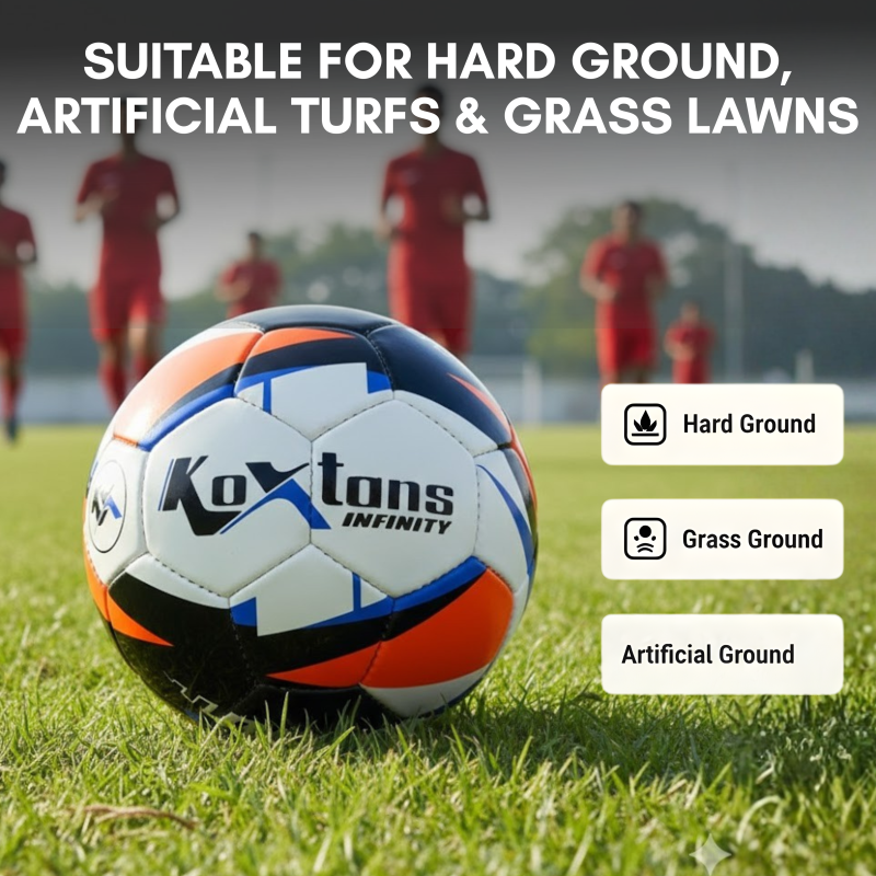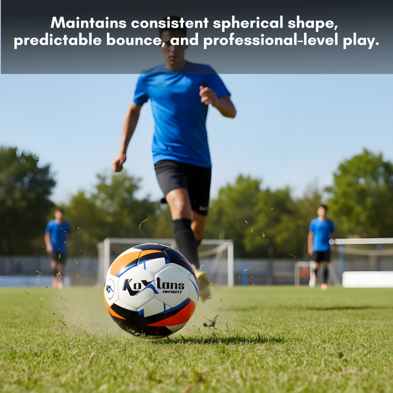 Its multi-panel stitched construction maintains perfect shape and flight stability, while the high-quality bladder ensures consistent air retention for reliable bounce. Suitable for schools, clubs, academies, and professional training, the Football Infinity PU Leather is designed to perform on grass, turf, and indoor courts.