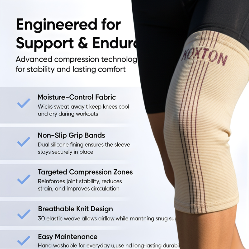 The Koxtons Knee Cap - Saga is designed for those who need enhanced knee protection and long-lasting comfort. Engineered with advanced compression technology, it helps improve blood circulation, reduce swelling, and provide firm joint support.
