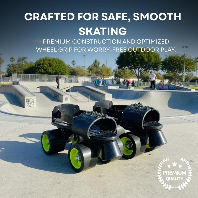 The skates feature a robust and supportive boot that provides strong ankle support, helping skaters maintain stability during turns, speed control, and long skating sessions. High-quality wheels ensure smooth rolling and good grip on skating rinks, pavements, and smooth outdoor surfaces. The bold fluorescent black finish gives the skates a powerful, modern, and premium look.