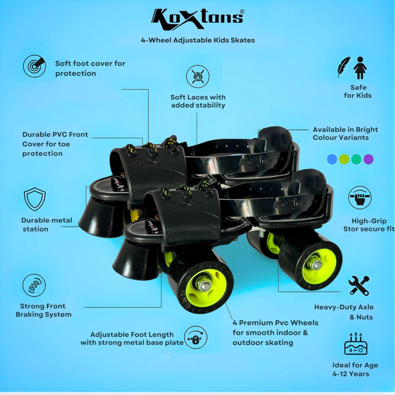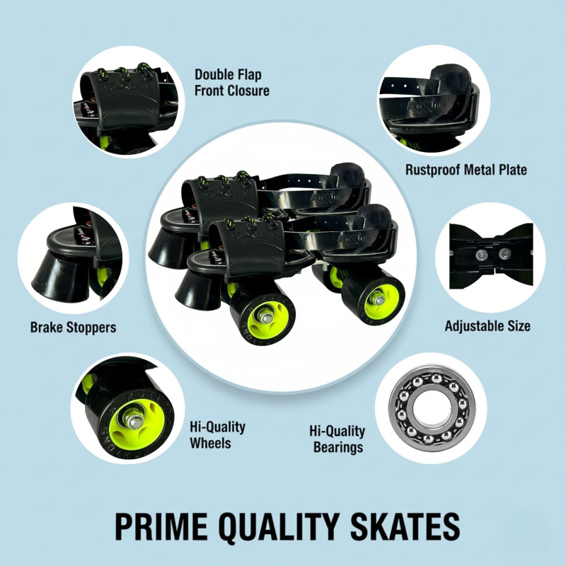 Whether you are skating for fun, fitness, or regular practice, Roller Skates – Xplod (Fluorescent Black) combine strength, comfort, and style, making them an excellent choice for kids, teenagers, and adults.