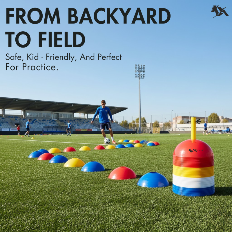 Each set comes in bright assorted colours, making them easy to spot on any surface. With Koxtons’ commitment to quality and Pan India Delivery, this dome cone set is a must-have for schools, academies, trainers, and sports clubs.