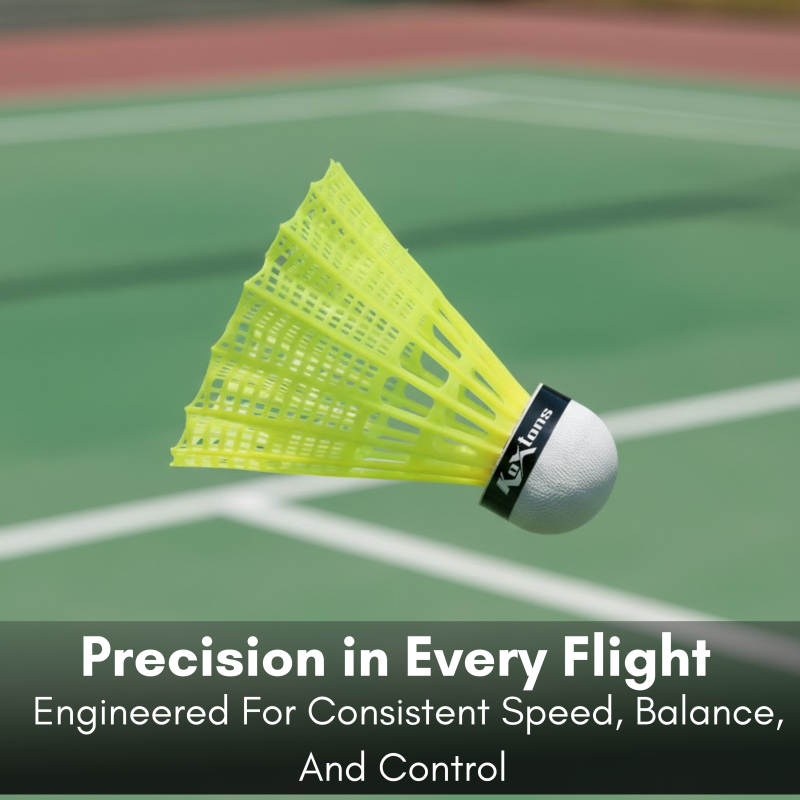 Designed with beginner players and recreational games in mind, the Koxtons KOX-555 Nylon Shuttlecock offers excellent flight stability and solid build quality at an affordable price. The shuttle features a durable nylon skirt for flexibility and a composite cork base that helps maintain consistent bounce and trajectory.
