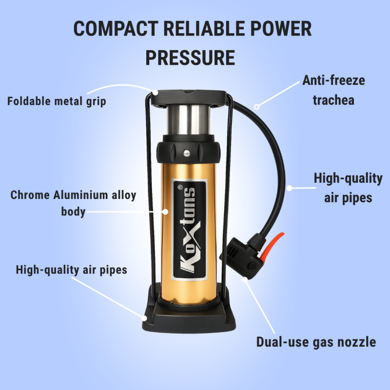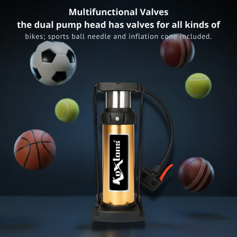 Koxtons Footpump For Bicycle, Ball Car & Bike - Gold