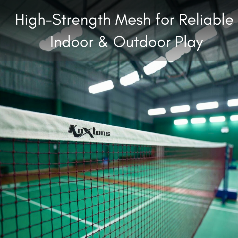 Elevate your badminton sessions with the Koxtons BADMINTON NET - KX-111 COTTON, crafted for enhanced stability, durability, and long-lasting use. Built with premium-grade cotton, this net is designed to meet the needs of schools, clubs, and sports academies that demand high-performance sports equipment. The reinforced top tape, robust border stitching, and standard dimensions ensure that this net stays firm and reliable match after match. Whether you're training or playing friendly matches, the KX-111 provides the support you need.