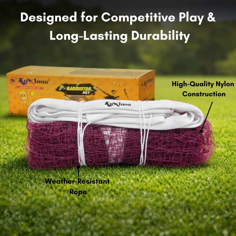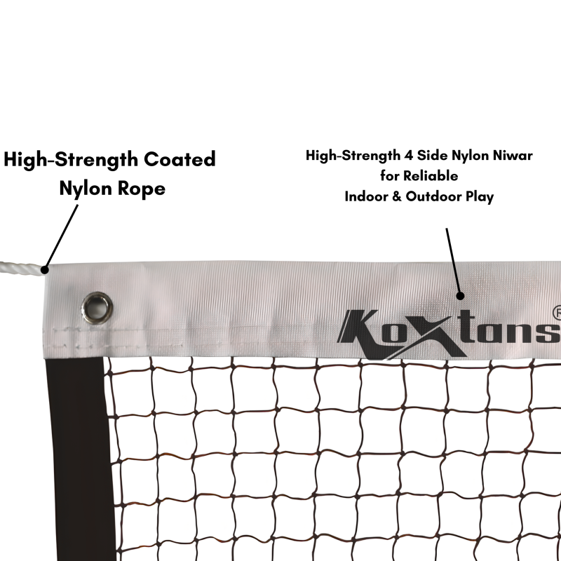 The Koxtons BADMINTON NET - KX-115 NYLON is a high-quality nylon net designed for performance-focused players and coaches. Made from premium-grade nylon mesh, this net offers better strength and tension, making it ideal for regular practice, club-level matches, and intensive coaching sessions.