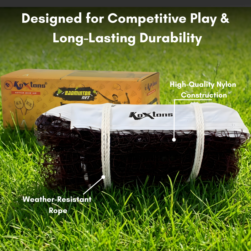 Made from high-quality nylon, the net offers strength and stability, with a standard BWF-compliant design. Its lightweight yet tough build makes it easy to install and roll up after play. Designed for both indoor and outdoor use, this net is a dependable choice for every badminton enthusiast.