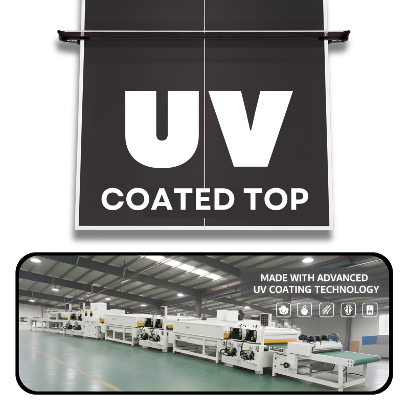 The table features a durable and evenly finished tabletop that supports smooth rallies and controlled shots. Its sturdy frame and stable leg structure ensure minimal movement during play, providing a safe and reliable gaming experience. The elegant black finish gives the table a modern and premium appearance, making it a great addition to any indoor space.