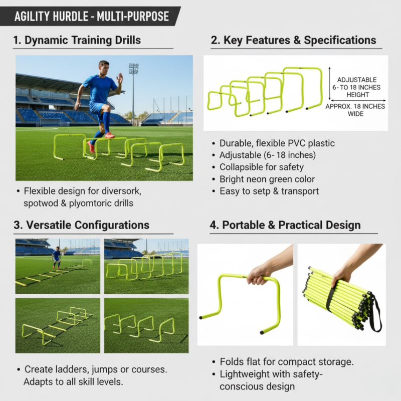 Crafted from sturdy and flexible PVC material, it ensures safety and durability during drills. Its bright color and lightweight frame make it highly visible and easy to carry. Whether you're into football, track & field, basketball, or fitness workouts, this training hurdle is a perfect addition to your routine.