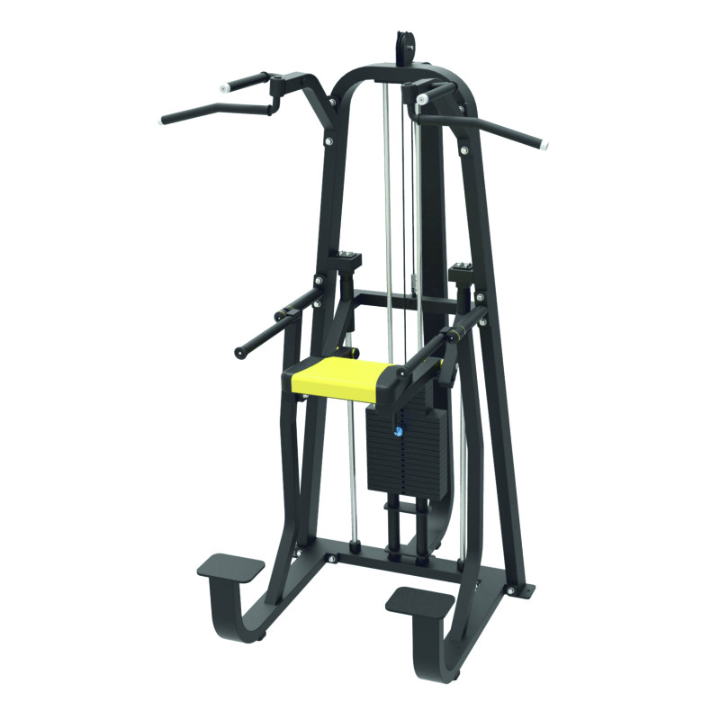 A: The weight stack provides adjustable assistance to support your body weight during dips & pull-ups.