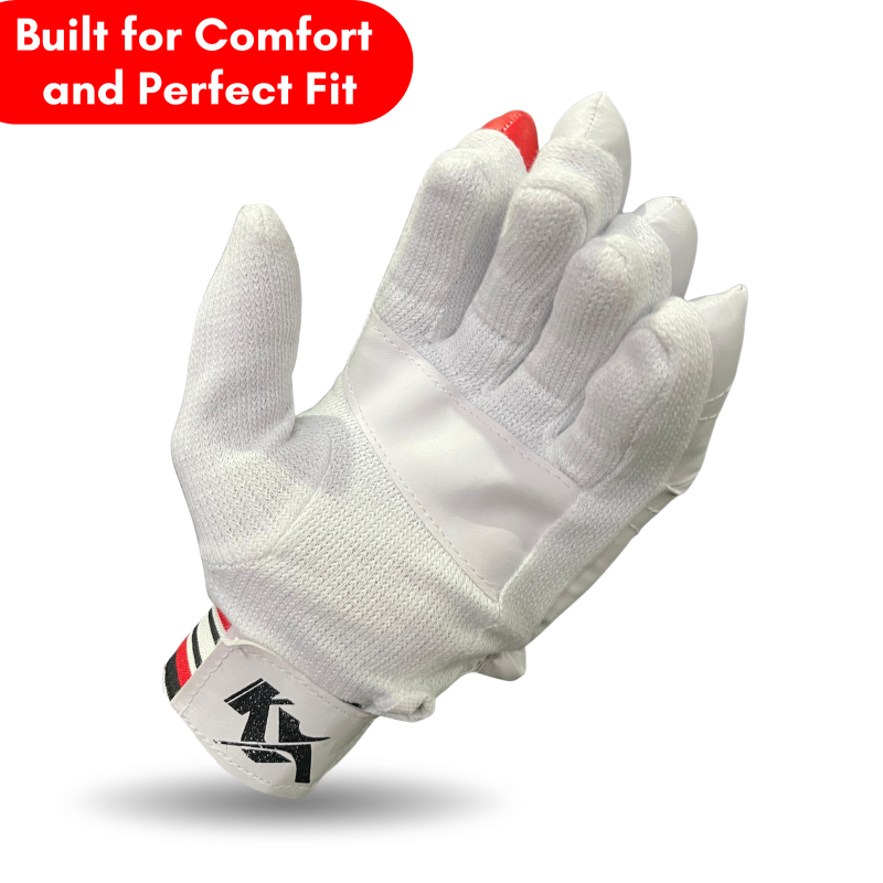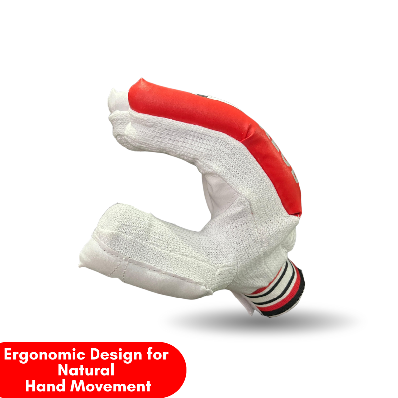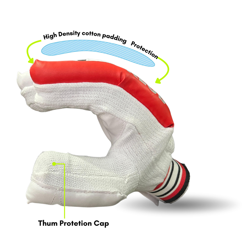 These gloves feature a textured synthetic palm for a solid grip on the bat, while high-density foam padding on fingers and backhand ensures basic protection against moderate-impact deliveries. The mesh inserts and towel-lined interior keep your hands cool and sweat-free, even during long innings.