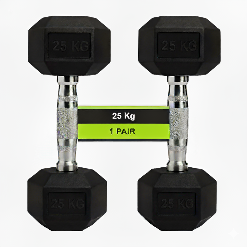 The Koxtons Dumbells - Hexagon - 25 Kg is designed for serious lifters aiming to build muscle mass, strength, and endurance. With a premium hexagonal shape, these dumbbells ensure stability by preventing rolling, while the rubber-coated heads protect your floor and reduce noise. The ergonomic chrome handle offers a secure grip, making them perfect for both commercial gyms and home workouts. Whether you’re doing presses, rows, or squats, this 25 Kg dumbbell delivers consistent performance and durability.