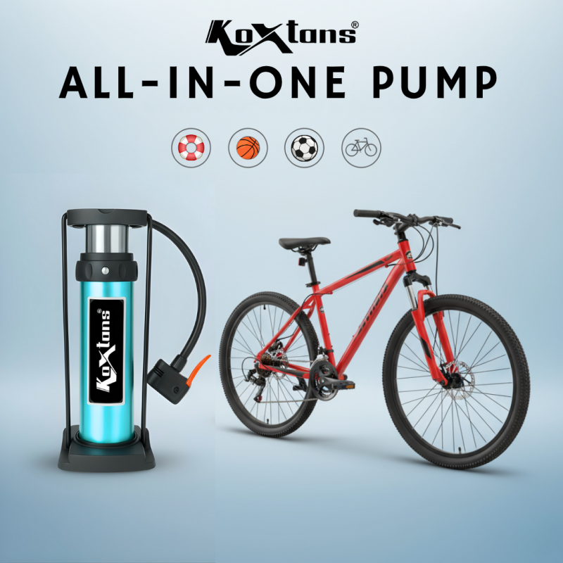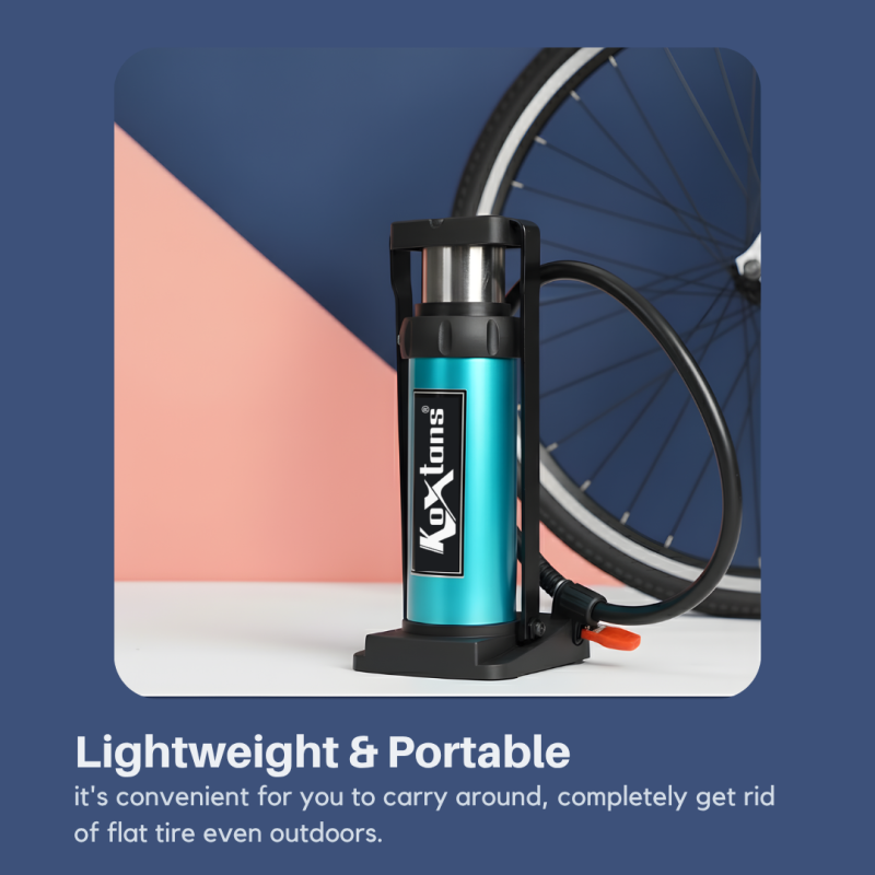 The Koxtons Footpump for Bicycle – Metallic Blue is a compact, lightweight, and high-performance manual foot pump designed for quick and efficient tire inflation. Its aluminium body ensures long-lasting durability while keeping the pump easy to carry.