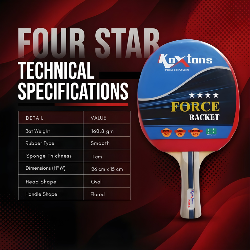 Level up your table tennis game with the Koxtons TT Bat - Force, crafted for players who demand both control and power. Its high-quality rubber surface offers excellent spin response and consistent ball contact, while the ergonomic handle ensures a firm and comfortable grip during fast-paced rallies. Lightweight and durable, this racket is perfect for beginners and intermediate players seeking to develop skills and performance. Whether for school, club, or casual games at home, this bat delivers reliability at an unbeatable value. Includes a 14-day return policy and pan-India delivery.
